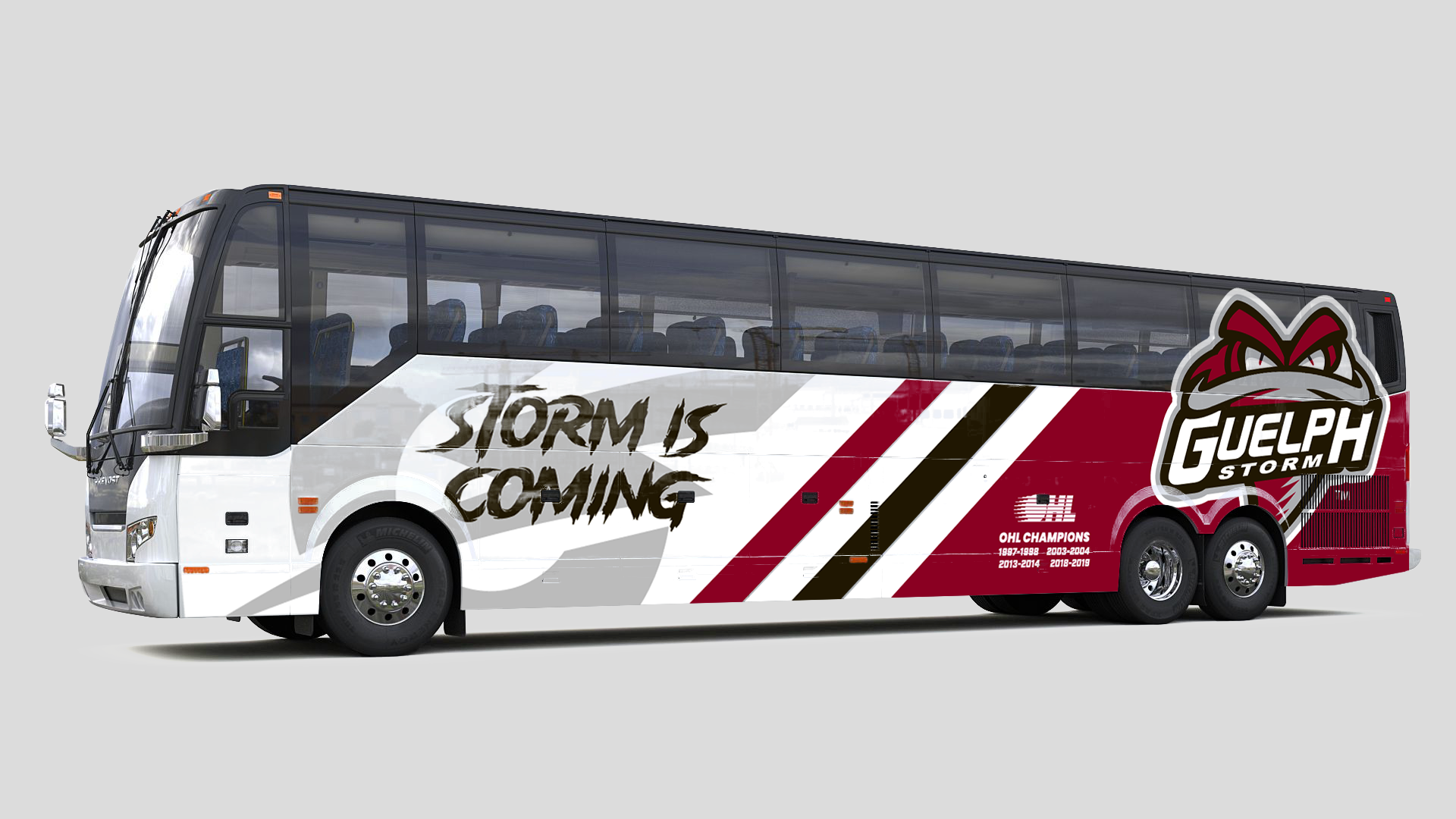 A timeless vinyl wrap design for Guelph Storm’s team bus that ensures they bring the team's history and pride everywhere they go.
